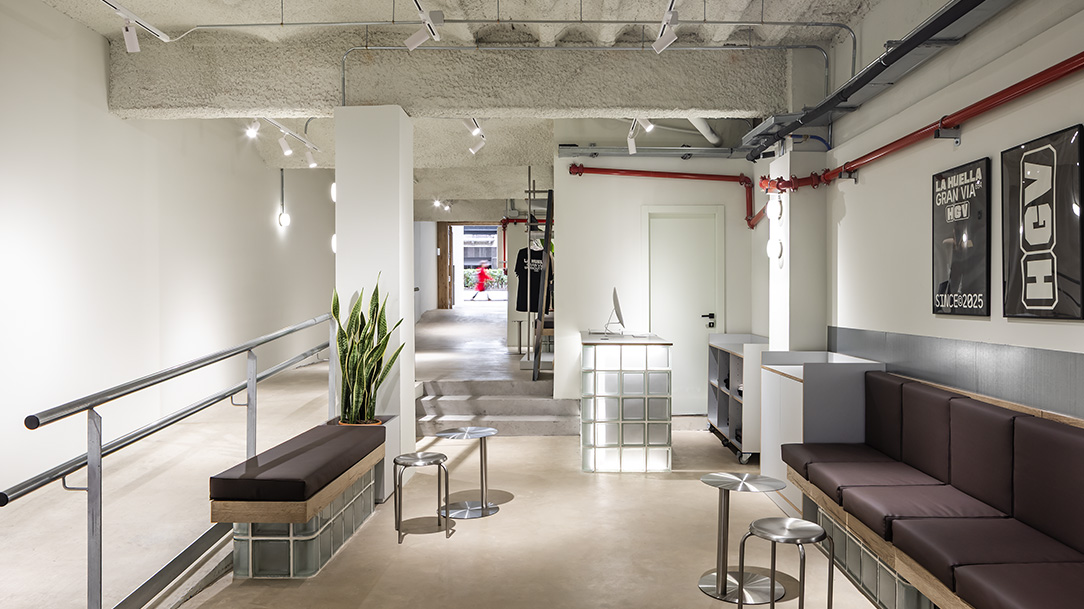 El proyecto de La Huella Workout Club es un espacio de 800 m2 de fitness, donde arquitectura, marca y experiencia de usuario se desarrollan de forma coherente. Ubicado en Barcelona, el proyecto redefine el concepto de gimnasio a través de un diseño contemporáneo basado en materiales como el hormigón, el acero y el cristal.